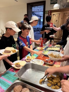 En cada torn de les colònies celebrem la nit americana amb el sopar típic americà: hamburguesa i patates fregides.